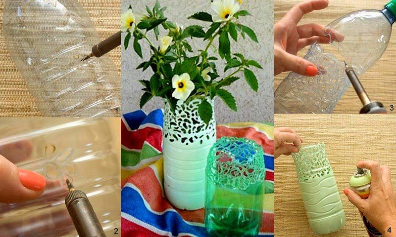 It is very simple to recycle a water, juice or soda bottle into a flower pot. You will need: a knife, acrylic paint and a little imagination to turn an old plastic bottle into a beautiful and funny flower pot. It’s a cheap and easy Do It Yourself project. The plastic bottles pots can be placed inside or outside and you can plant ornamental or aromatic plants in them. Play with your children and realize fun plastic pots. Look here for some ideas.
